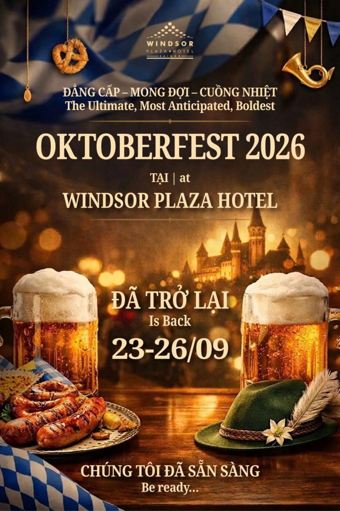 Taking its roots from Munich, Germany, Oktoberfest Vietnam is a celebration of authentic German fare, beer, and fun. With well over 19,000 in attendance, Oktoberfest Vietnam at Windsor Hotel Plaza and Hanoi Daewoo Hotel is expected to be one of the largest Oktoberfest celebrations in Southeast Asia. This year, the festival will take place at Windsor Plaza Hotel from Tuesday, 27th September to Sunday, 2nd October 2022, and at Hanoi Daewoo Hotel from Thursday 6th to Saturday 8th October 2022.